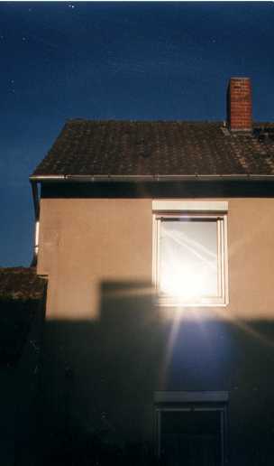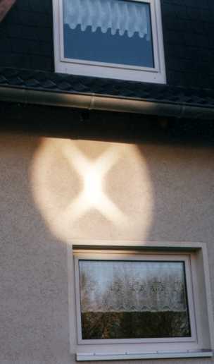 gegenüberstehen. Die kreuzförmige Reflexion am Haus