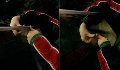 darauf und halte ihn mit Fingern und Daumen fest. Dann dreht man die Hand um, so dass beide Bälle
