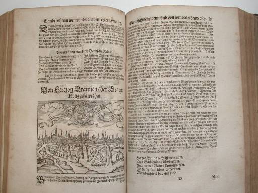 hatte - vermutlich - ein Mönch ein zweites, viel älteres Werk eingebunden, nämlich eine Braunschweig-Chronik aus dem 17. Jahrhundert.