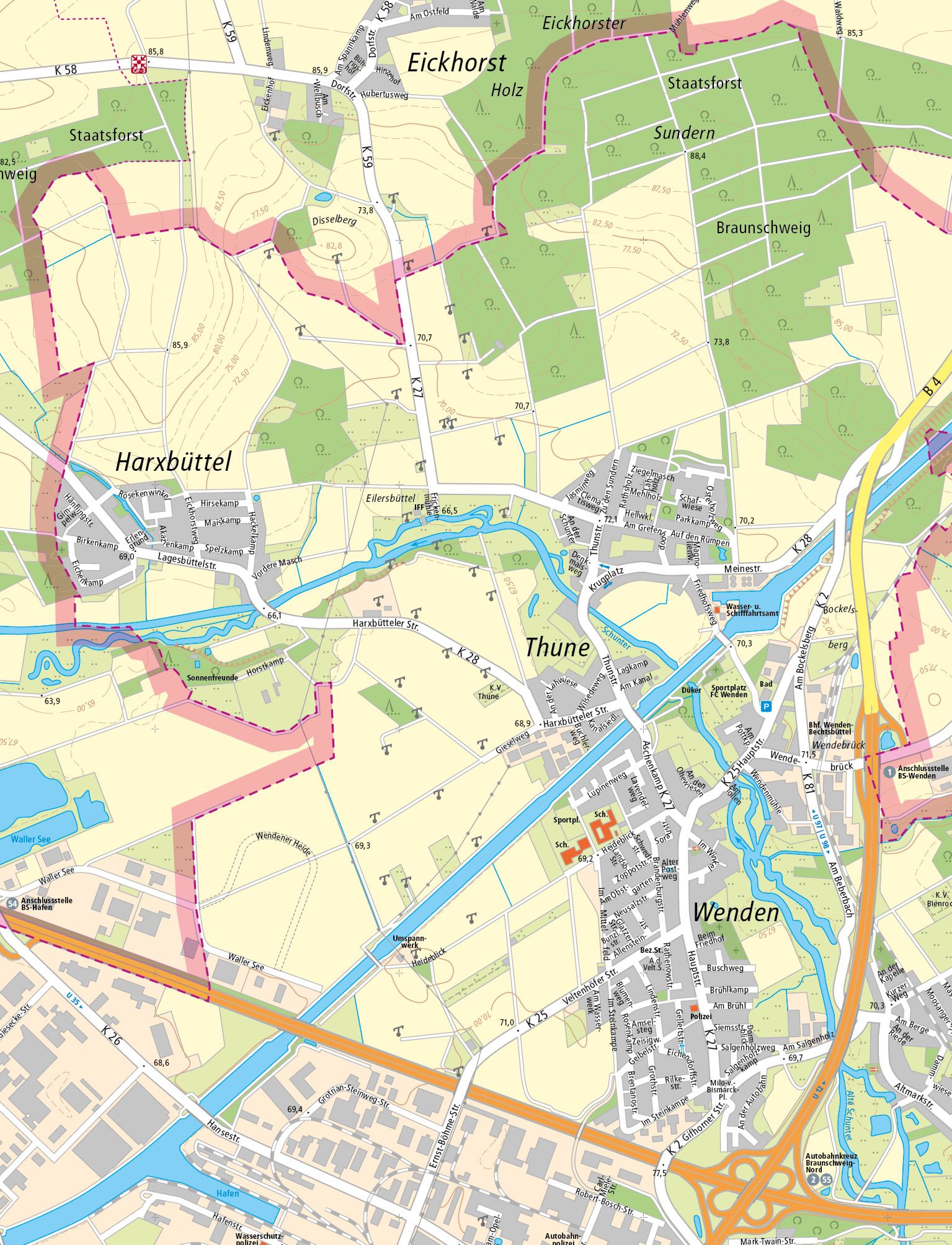 Stadtplanausschnitt Wenden, Thune und Harxbüttel als JPG zum Download ca. 1 MB