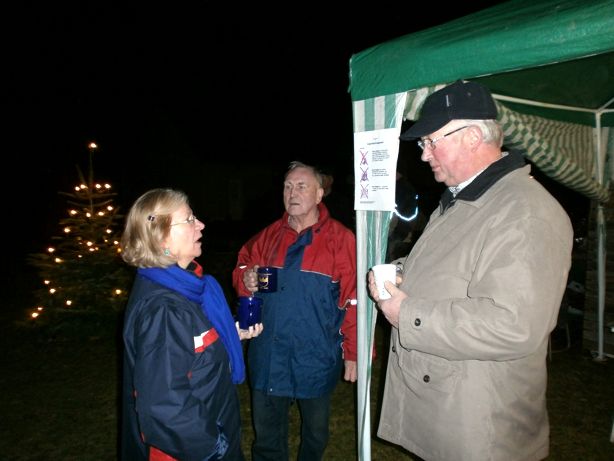 Heidi Mundlos, Bernd Ehlers und Erich Hinze beim Glühwein