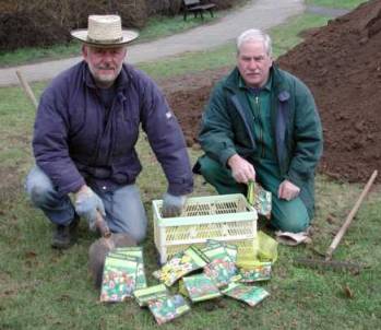 Peter Franke und Hans Domke setzten nicht nur Hunderte Tulpen- und Narzissenzwiebeln, sondern bepflanzten