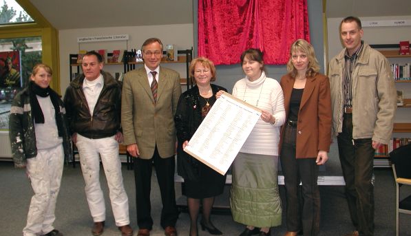 am 13. Januar 2005 vorab Vertreter der Stadt in die neu gestalteten Räume der Bücherei am Heideblick